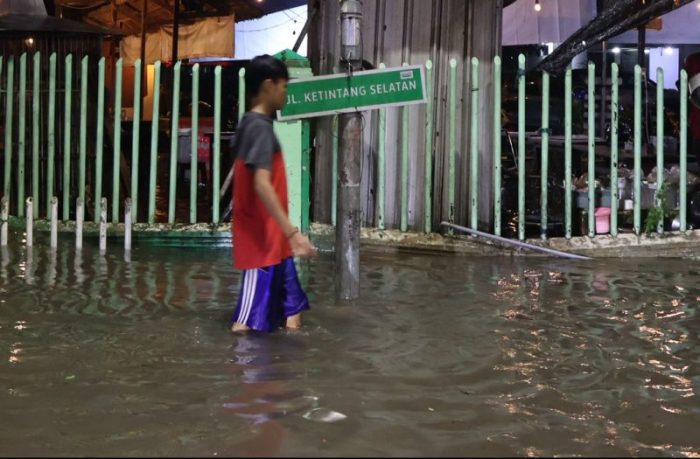 Lanjutnya, kedua adalah banjir rob akibat pasang permukaan air laut, yang sesuai prediksi BMKG memang akan terus berlangsung hari-hari ini. Akumulasi kejadian itu membuat saluran atau sistem drainase harus “antre” mengalirkan air ke sungai besar maupun laut. Dengan kata lain, aliran sungai terhambat masuk ke laut.