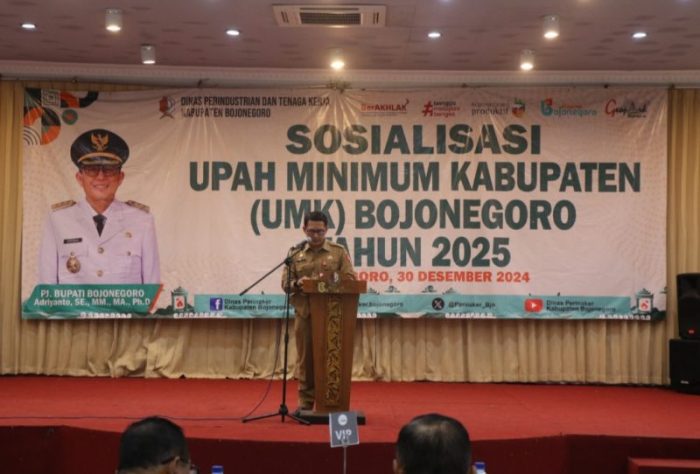 SURABAYATODAY.ID, BOJONEGORO – Pemerintah Kabupaten (Pemkab) Bojonegoro melalui Dinas Perindustrian dan Tenaga Kerja, mengumumkan sekaligus mensosialisasikan besaran UMK Kabupaten Bojonegoro Tahun 2025. Nilainya yakni Rp 2.525.132.