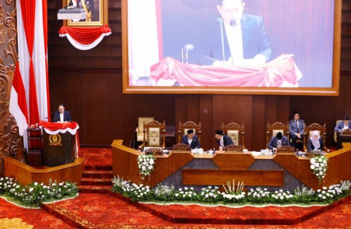 SURABAYATODAY.ID, SURABAYA – Penjabat (Pj) Gubernur Jawa Timur Adhy Karyono menyampaikan dua nota penjelasan terkait perubahan nomenklatur dua BUMD pada sidang paripurna bersama DPRD Jatim di gedung DPRD Jatim, Senin (20/1).