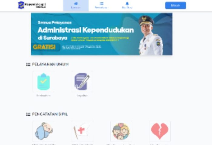 Untuk mendapatkan layanan Adminduk mandiri di Surabaya, warga bisa mengakses website atau situs dispendukcapil.surabaya.go.id. Di situs tersebut, warga dapat memilih menu atau scan barcode untuk masuk ke layanan aplikasi KNG.