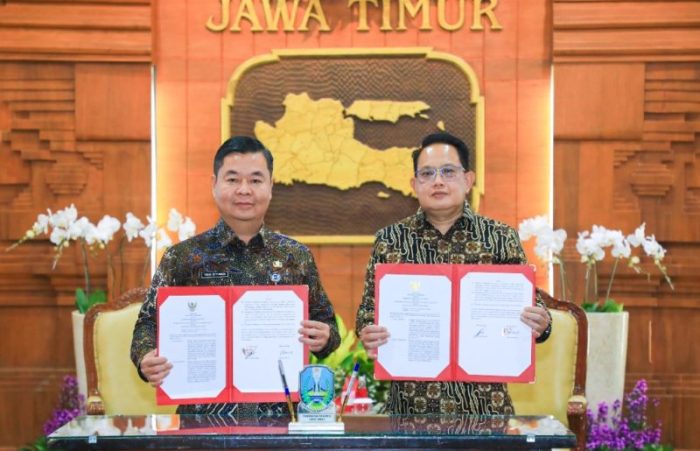 SURABAYATODAY.ID, SURABAYA – Penjabat (Pj) Gubernur Jawa Timur Adhy Karyono dan Pj. Gubernur DKI Jakarta Teguh Setyabudi melakukan penandatanganan adendum kesepakatan bersama antara Pemprov Jatim dan Pemprov DKI Jakarta. Penandatanganan dilaksanakan di gedung Negara Grahadi Surabaya, Jumat (31/1).