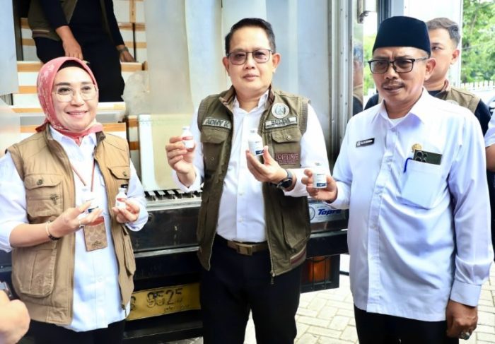 SURABAYATODAY.ID, SURABAYA – Pemprov Jatim mendistribusikan bantuan sebanyak 870.000 dosis vaksin Penyakit Mulut dan Kuku (PMK) ke 38 kabupaten/kota se-Jatim. Bantuan Vaksin PMK ini didistribusikan secara simbolis oleh Pj Gubernur Jatim Adhy Karyono kepada lima daerah yaitu, Kab. Pamekasan 14.500 Dosis, Kab. Kediri 28.750 Dosis, Kab. Bojonegoro 25.250 Dosis, Kota Probolinggo 1.600 Dosis dan Kab. Pasuruan 18.000 Dosis.