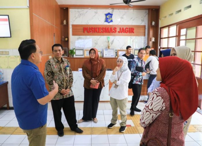 Kunjungan Pj Gubernur Jatim Adhy Karyono di Puskesmas Jagir Surabaya dalam rangka memantau pelaksanaan cek kesehatan gratis.