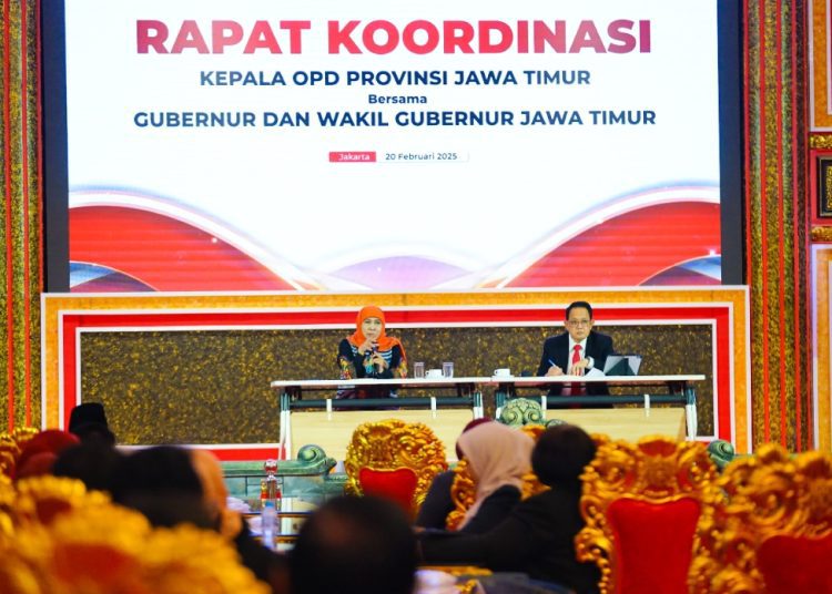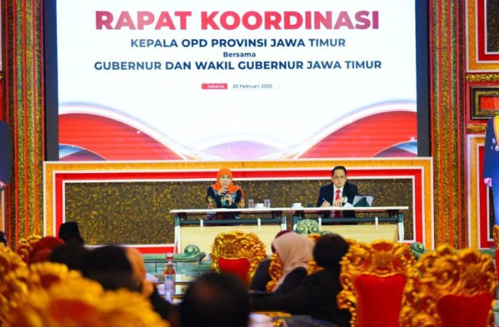 SURABAYATODAY.ID, JAKARTA – Gubernur Jawa Timur Khofifah Indar Parawansa usai dilantik langsung tancap gas menggelar rapat koordinasi bersama jajaran kepala OPD Pemprov Jatim di Kraton Majapahit Jakarta, Kamis (20/2) .