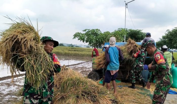Babinsa Sumberrejo Bantu Petani Tlogohaji Panen Padi