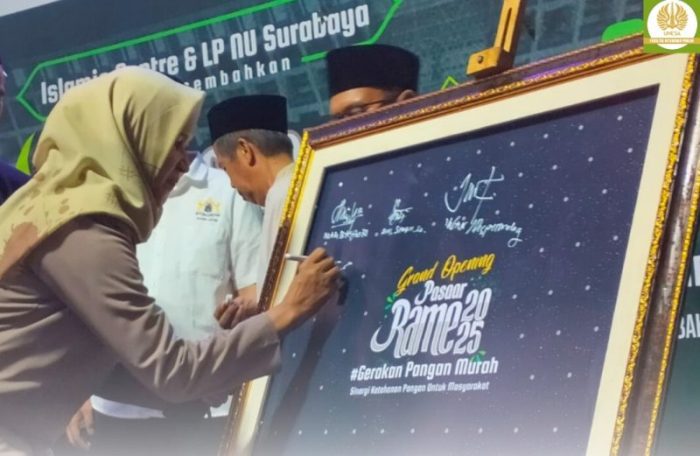 SURABAYATODAY ID, SURABAYA – Fakultas Ketahanan Pangan Universitas Negeri Surabaya (FKP Unesa) melakukan Deklarasi Gerakan Pangan Murah: Sinergi Ketahanan Pangan untuk Masyarakat. Deklarasi ini digelar bersamaan dengan dibukanya Pasar Rame (Ramadhan Meriah) 2025, Minggu (16/3). Acara ini digelar di halaman kompleks Masjid Raya Islamic Centre Jawa Timur.