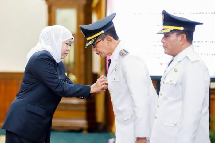 SURABAYATODAY.ID, SURABAYA – Gubernur Jawa Timur Khofifah Indar Parawansa melantik KH Kholilurrahman sebagai Bupati Pamekasan dan Sukriyanto sebagai Wakil Bupati Pamekasan masa jabatan 2025-2030 di Gedung Negara Grahadi Surabaya, Rabu (19/3) malam.