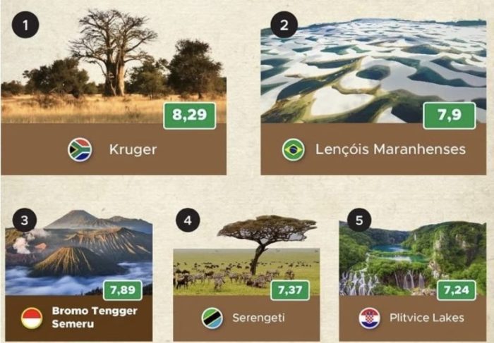 Angka ini menempatkannya tepat di bawah Taman Nasional Kruger di Afrika Selatan dan Taman Nasional Lencois Maranhenses di Brazil yang masing-masing meraih peringkat pertama dan kedua.