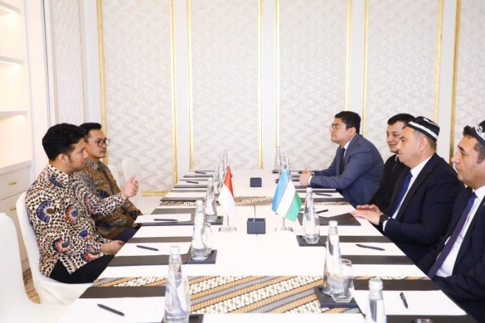 SURABAYATODAY.ID, JAKARTA – Wakil Gubernur Jawa Timur Emil Elestianto Dardak menghadiri Uzbekistan-Indonesia Partnership Forum di Hotel Four Season Jakarta, Selasa (15/4). Usai gelaran, Wagub Emil diundang oleh Gubernur Samarkand Uzbekistan untuk mendiskusikan berbagai hal terkait pengembangan kerjasama antara Provinsi Jatim dan Samarkand yang diharapkan dapat meningkatkan perekonomian kedua wilayah.