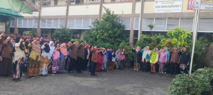 SURABAYATODAY.ID, SURABAYA – Suasana semangat dan kebanggaan mewarnai peringatan Hari Kartini di SDN Warugunung I, Surabaya, pada Senin (21/4). Bertempat di halaman sekolah, seluruh siswa, guru, dan staf antusias mengikuti upacara bendera yang berlangsung khidmat, mengenakan busana adat dari berbagai daerah di Indonesia.