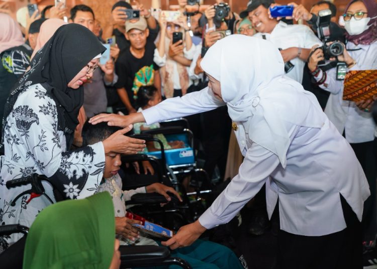 SURABAYATODAY.ID, PONOROGO – Gubernur Jawa Timur Khofifah Indar Parawansa menyerahkan berbagai bantuan sosial (bansos) hingga Bantuan Keuangan Khusus (BKK) Desa senilai Rp. 4.769.000.000 kepada masyarakat Ponorogo di Pendopo Agung Kabupaten Ponorogo, Rabu (14/5).