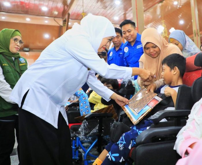 SURABAYATODAY.ID, BANGKALAN – Gubernur Jawa Timur Khofifah Indar Parawansa menyerahkan berbagai bantuan sosial, tali asih pilar kesejahteraan sosial, bantuan pemberdayaan masyarakat dan desa, serta sembako kepada para penerima manfaat di Pendopo Kabupaten Bangkalan, Jumat (23/5).