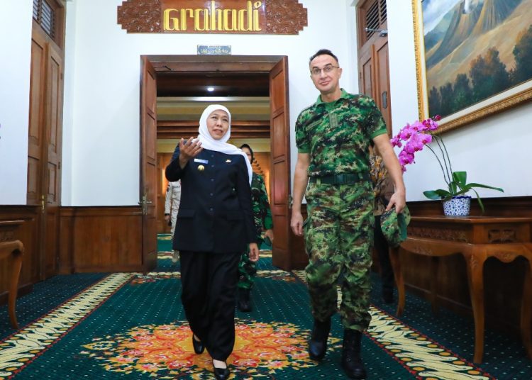 SURABAYATODAY.ID,SURABAYA – Gubernur Jawa Timur Khofifah Indar Parawansa menerima para atase pertahanan dari 17 negara sahabat di Gedung Negara Grahadi, Senin (26/5). Dalam kesempatan ini dimanfaatkan untuk mengenalkan keunggulan Jawa Timur sebagai Center of Gravity.