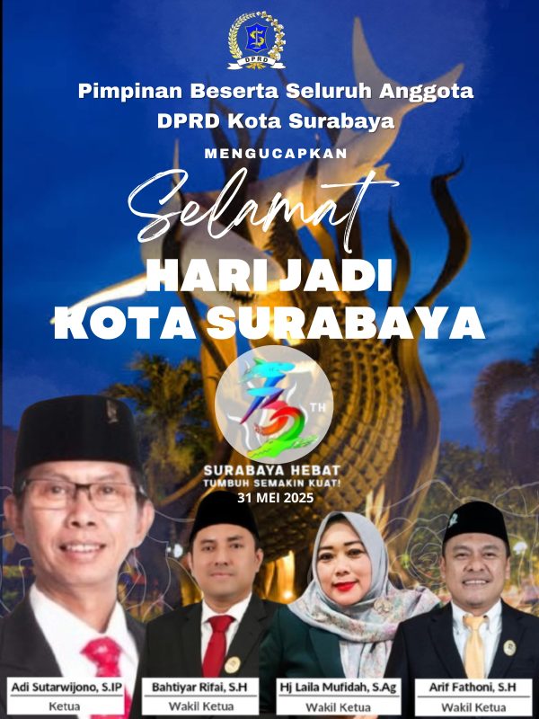 Pimpinan Beserta Seluruh Anggota DPRD Kota Surabaya Mengucapkan Selamat Hari Jadi Kota Surabaya Ke-732