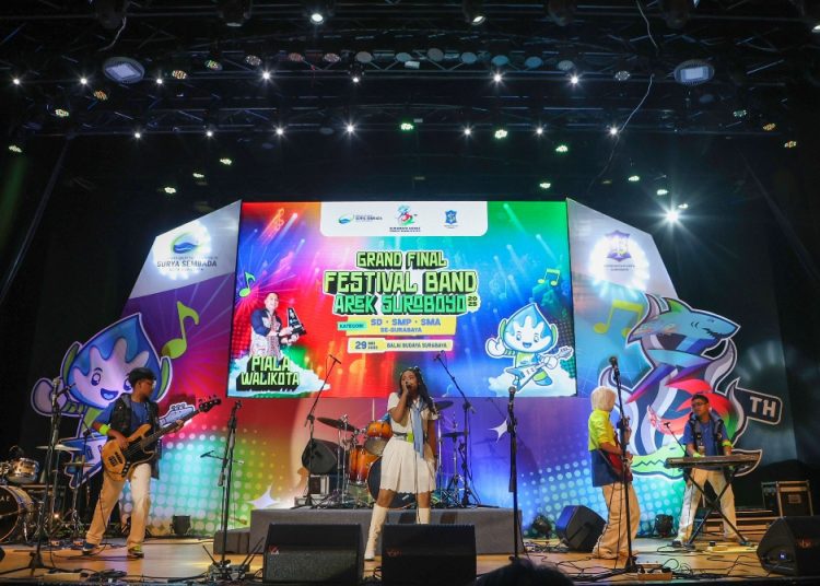 SURABAYATODAY.ID, SURABAYA –Pemerintah Kota (Pemkot) Surabaya bersama Perusahaan Daerah Air Minum (PDAM) Surya Sembada Kota Surabaya kembali menggelar Festival Band Arek Suroboyo bertempat di Balai Pemuda, Jumat (29/5/2025). Festival yang khusus bagi para pelajar ini, menjadi salah satu rangkaian acara dalam memperingati Hari Jadi Kota Surabaya (HJKS) ke-732.