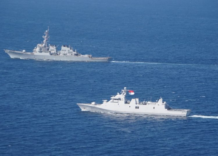Momen Kapal Perang TNI AL dan Amerika Laksanakan Farewell Pass Di Perairan Madura