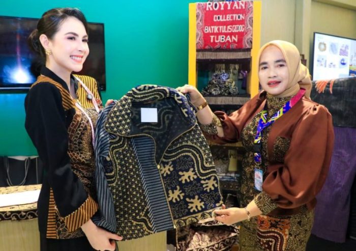 SURABAYATODAY.ID, BALIKPAPAN – Ketua Dewan Kerajinan Nasional Daerah (Dekranasda) Jawa Timur Arumi Bachsin Emil Dardak mengunjungi booth Dekranasda Jatim di Dekranas Expo 2025 yang di gelar dalam rangka Puncak Peringatan Hari Ulang Tahun Dewan Kerajinan Nasional ke-45 tahun 2025 di Balikpapan Sport and Convention Center (BSCC) Dome, Kalimantan Timur, Rabu (9/7). Di kesempatan ini istri Wakil Gubernur Jatim ini mempromosikan Batik Gedog Tuban.