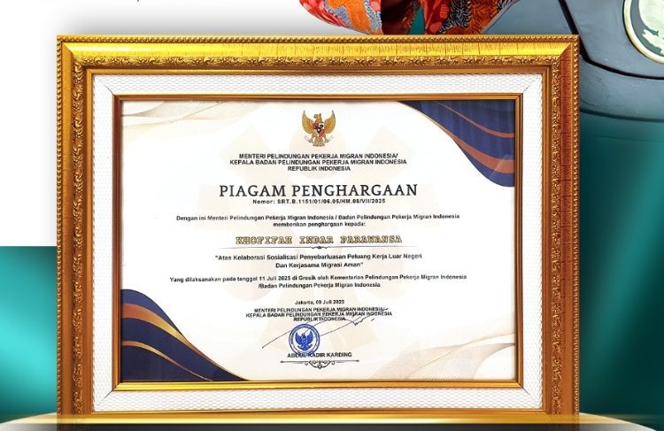 SURABAYATODAY.ID, GRESIK – Komitmen kuat Gubernur Jawa Timur Khofifah Indar Parawansa dalam melindungi dan memberdayakan Pekerja Migran Indonesia (PMI) kembali mendapat pengakuan nasional. Kali ini, penghargaan datang dari Menteri Pelindungan Pekerja Migran Indonesia/Kepala Badan Pelindungan Pekerja Migran Indonesia (BP2MI), Abdul Kadir Karding.