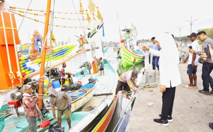 SURABAYATODAY.ID, BANYUWANGI – Gubernur Jawa Timur Khofifah Indar Parawansa melakukan dialog dan menyerap aspirasi para kelompok perikanan dan nelayan di Dermaga Muncar Banyuwangi, Sabtu (12/7). Tak hanya melakukan dialog, dalam kesempatan ini Gubernur Khofifah juga menyerahkan bantuan perikanan dengan total senilai Rp 276 juta.