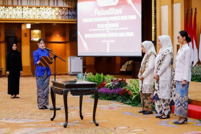 SURABAYATODAY.ID, SURABAYA – Ketua Dekranasda Jawa Timur Arumi Bachsin melantik pengurus Dekranasda Provinsi Jatim, sekaligus melantik Ketua Dekranasda wilayah Pamekasan, Trenggalek dan Pacitan di Kantor Sekretariat Daerah Provinsi Jatim, Kamis, (24/7).
