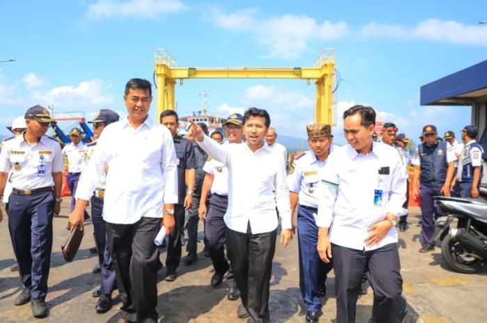 Wakil Gubernur Jatim Emil Elestianto Dardak saat tinjauan lapangan di ASDP Pelabuhan Ketapang, Banyuwangi.