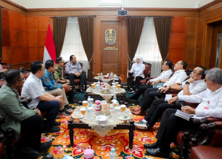 Gubernur Khofifah menerima Executive General Manager Pertamina Patra Niaga Regional Aji Anom Purwasakti Jatimbalinus untuk menjelaskan kondisi terkini. Pertemuan ini digelar di Kantor Gubernur di Jalan Pahlawan Nomor 110 Surabaya, Rabu (30/7).