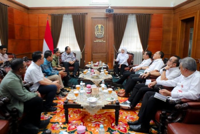 Gubernur Khofifah menerima Executive General Manager Pertamina Patra Niaga Regional Aji Anom Purwasakti Jatimbalinus untuk menjelaskan kondisi terkini. Pertemuan ini digelar di Kantor Gubernur di Jalan Pahlawan Nomor 110 Surabaya, Rabu (30/7).