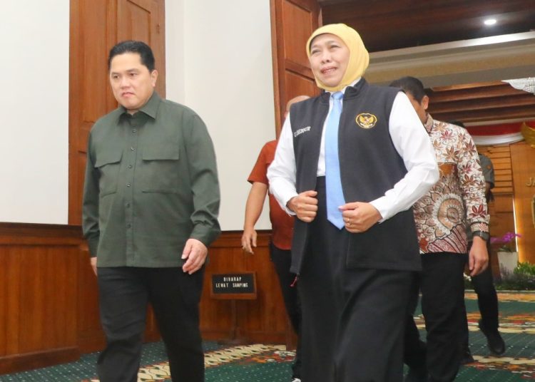 SURABAYATODAY.ID,SURABAYA – Ketua Umum PSSI Erick Thohir menyampaikan apresiasinya kepada Gubernur Jawa Timur Khofifah Indar Parawansa yang memberikan dukungan penuh terhadap PSSI dan sepak bola di daerah.
