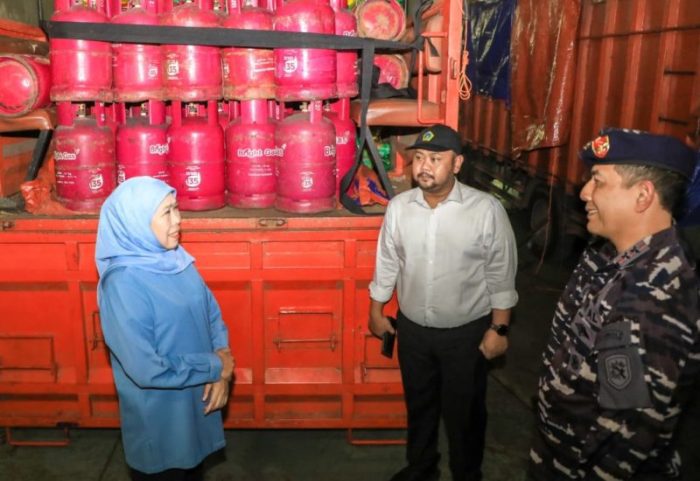 Gubernur Jatim Khofifah Indar Parawansa jelang pengiriman logistik ke Pulau Bawean menggunakan KRI Suranaya-591.