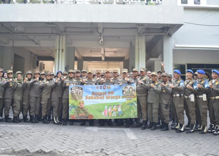 SURABAYATODAY.ID, SURABAYA – Satpol PP Kota Surabaya memperkenalkan tagline baru, yaitu “Satpol PP Sahabat Warga”, sebagai semangat baru dalam melaksanakan tugas. Tagline ini dipilih untuk mencerminkan tekad seluruh jajaran Satpol PP Kota Surabaya agar dapat menciptakan suasana kota yang kondusif dan lebih dekat dengan masyarakat.