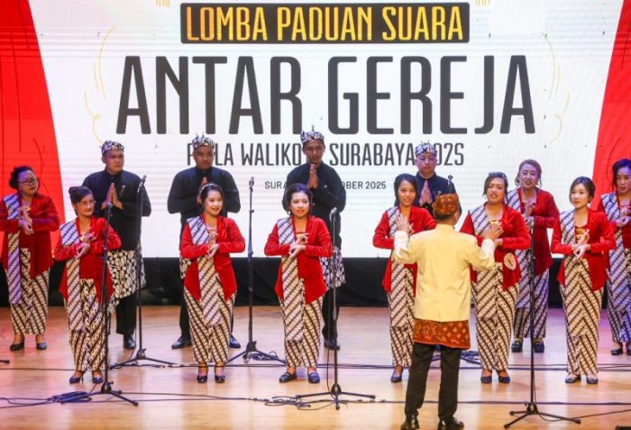 SURABAYATODAYMID, SURABAYA –Pemerintah Kota (Pemkot) Surabaya berkomitmen untuk menjadikan Lomba Paduan Suara Antar Gereja Se-Surabaya sebagai agenda rutin tahunan. Kegiatan ini bukan hanya sekadar kompetisi, tetapi merupakan sarana strategis untuk mengikatkan tali persaudaraan dan kebersamaan di antara umat Kristiani di Surabaya.