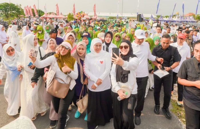 SURABAYATODAY.ID,LAMONGAN – Gubernur Jawa Timur Khofifah Indar Parawansa membaur bersama ribuan masyarakat Lamongan mengikuti Jalan Sehat Santri di Lapangan Gajah Mada, Kabupaten Lamongan, Minggu (26/10) pagi.