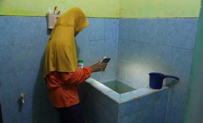 Foto ilustrasi pemantauan jentik nyamuk di bak kamar mandi.