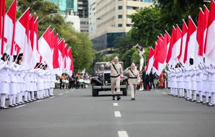 ”Parade ini melintasi jalur bersejarah seperti Jalan Tunjungan dan berhenti di depan Hotel Majapahit untuk prosesi penghormatan bendera, kemudian dilanjutkan menuju ke Balai Pemuda atau Alun-Alun Surabaya,” jelas Heri.