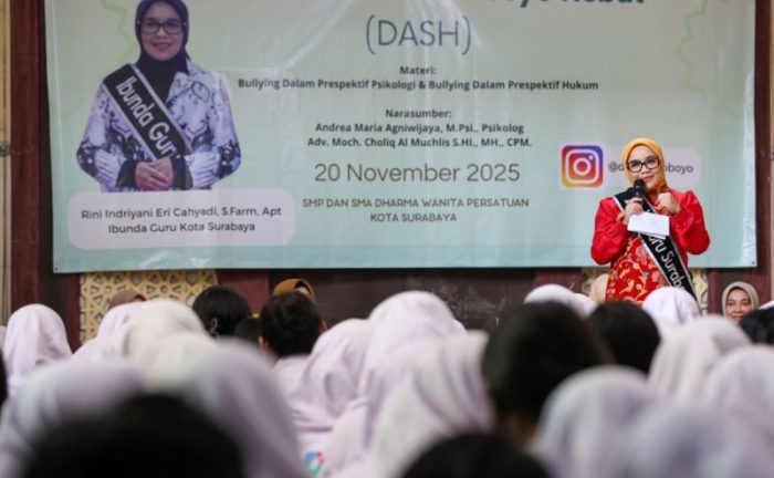 SURABAYATODAY.ID, SURABAYA -Pemerintah Kota (Pemkot) Surabaya, bekerja sama dengan Dharma Wanita Persatuan (DWP) Surabaya, meluncurkan inisiatif masif melalui program Dinamika Arek Suroboyo Hebat (DASH) 2025. Program ini bertujuan membekali remaja menghadapi berbagai tantangan masa kini, khususnya bullying dan pengaruh negatif era digital.