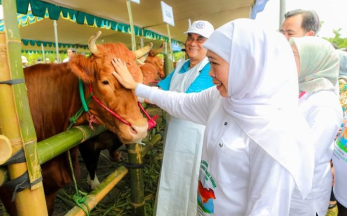 Gubernur Khofifah menyebut Jawa Timur patut bersyukur neraca kebutuhan dan ketersediaan produk peternakan menunjukkan angka surplus meskipun secara nasional masih terdapat defisit pada komoditas daging sapi dan susu.