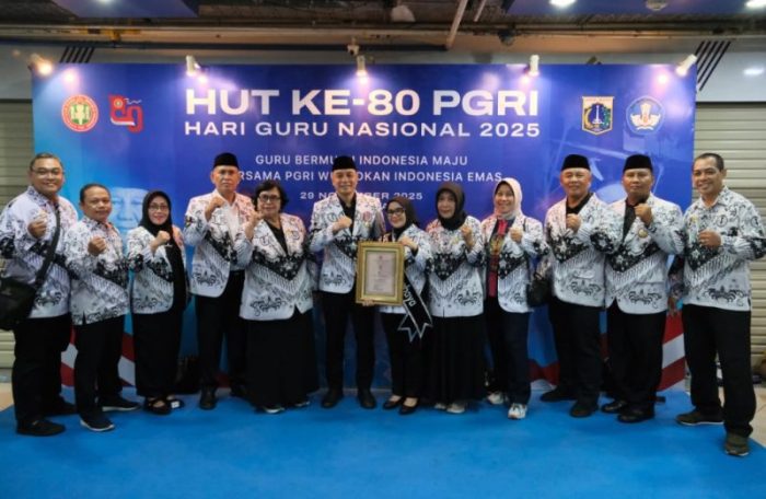 SURABAYATODAY.ID, SURABAYA – Wali Kota Surabaya, Eri Cahyadi, menerima Anugerah Dwija Praja Nugraha, sebuah pengakuan tertinggi di tingkat nasional, atas komitmennya yang kuat terhadap kemajuan sektor pendidikan dan peningkatan kesejahteraan para tenaga pendidik. Penghargaan bergengsi ini diserahkan pada puncak peringatan Hari Ulang Tahun (HUT) ke-80 PGRI dan Hari Guru Nasional (HGN) 2025, yang berlangsung di Britama Arena, Jakarta Utara, pada Sabtu (29/11/2025).