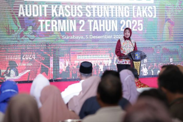 SURABAYATODAY.ID, SURABAYA – Pemerintah Kota (Pemkot) Surabaya terus berkomitmen dalam upaya percepatan penurunan angka stunting, dengan menargetkan tidak adanya kasus stunting baru pada tahun 2027. Komitmen ini diperkuat melalui penyelenggaraan Diseminasi Audit Kasus Stunting (AKS) Termin 2 Tahun 2025 yang berlangsung di Graha Sawunggaling, Jumat (5/12/2025).