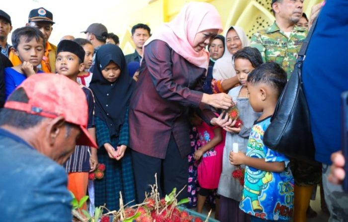 SURABAYATODAY.ID, *PIDIE JAYA – Gubernur Jawa Timur Khofifah Indar Parawansa menyapa para pengungsi yang terdampak musibah hidrometeorologi di Gedung Serbaguna Tgk Chik Pante Geulima, Pidie Jaya, Aceh, Sabtu (6/12).