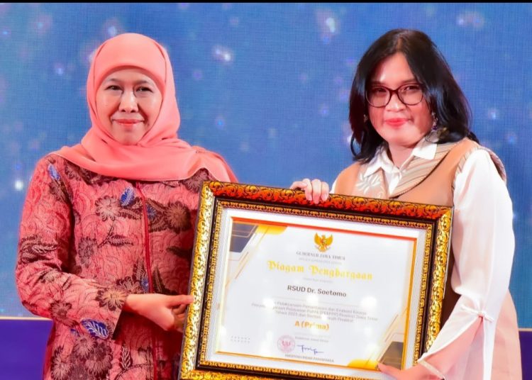SURABAYATODAY.ID, SURABAYA – Gubernur Jawa Timur Khofifah Indar Parawansa  menyerahkan  Penghargaan Pelayanan Publik, Akuntabilitas Kinerja, Zona Integritas, dan Budaya Kerja Tahun 2025. Penyerahan penghargaan tersebut dilakukan di Dyandra Convention Center Surabaya, Kamis (11/12).