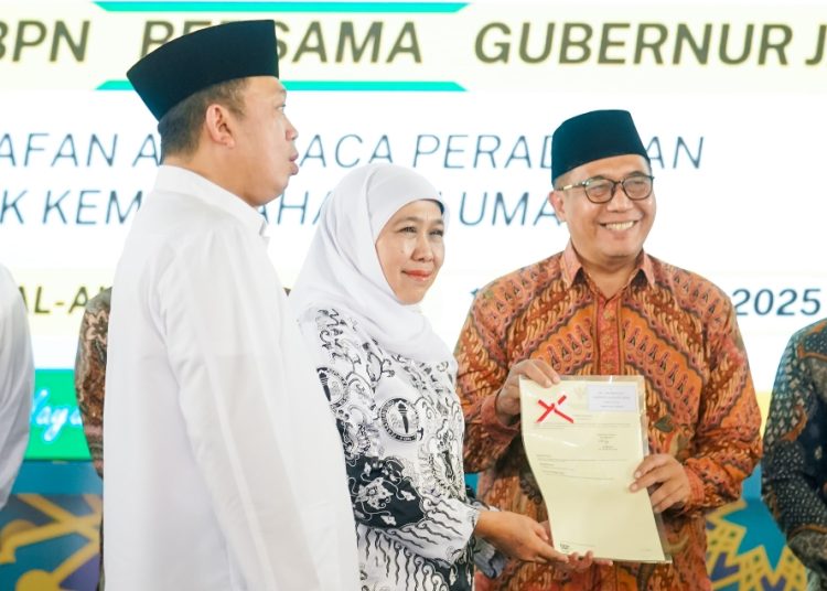 “Ada kepastian hukum dari seluruh bidang tanah yang diatasnya ada gedung baik itu milik institusi, perguruan tinggi, sekolah sekolah, badan-badan wakaf juga dan tentu milik tempat-tempat ibadah,” kata Gubernur Khofifah.