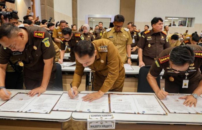 SURABAYATODAY.ID, SURABAYA –Pemerintah Kota (Pemkot) Surabaya melakukan penandatangan Perjanjian Kerja Sama (PKS) dengan Kejaksaan Negeri (Kejari) Surabaya dan Kejari Tanjung Perak terkait penerapan pidana sanksi sosial. Kerja sama tersebut merupakan tindak lanjut dari nota kesepahaman antara Pemerintah Provinsi (Pemprov) Jawa Timur dan Kejaksaan Tinggi (Kejati) Jawa Timur.