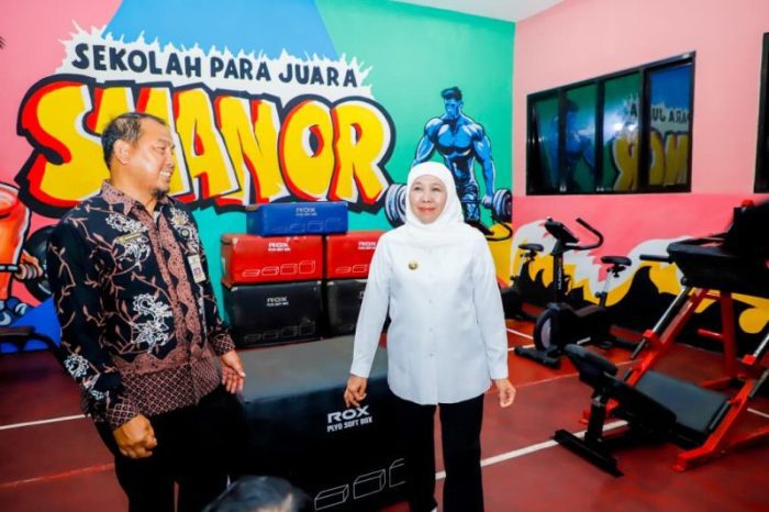 Komitmen tersebut diwujudkan melalui peresmian rehabilitasi sarana dan prasarana (Sarpras) SMA Negeri Olahraga (SMANOR) Sidoarjo oleh Gubernur Jawa Timur Khofifah Indar Parawansa, Rabu (17/12). Rehabilitasi gedung dan fasilitas SMANOR Sidoarjo menjadikan sekolah ini semakin strategis sebagai kawah candradimuka pembinaan atlet pelajar Jawa Timur.