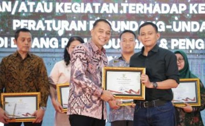 SURABAYATODAY.ID, SURABAYA – Pemerintah Kota (Pemkot) Surabaya memberikan penghargaan kepada 26 pelaku usaha atas kepatuhan mereka dalam pengelolaan dan pelaksanaan aspek lingkungan hidup sesuai dengan ketentuan undang-undang. Apresiasi tersebut diberikan langsung oleh Wali Kota Surabaya, Eri Cahyadi di Graha Sawunggaling pada Kamis, (18/12/2025).