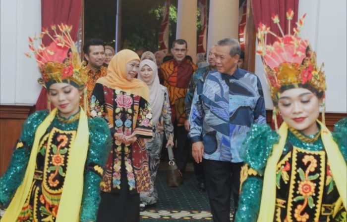 SURABAYATODAY.ID, SURABAYA – Gubernur Jawa Timur Khofifah Indar Parawansa menerima Menteri Besar Negeri Sembilan YAB Dato’ Seri Utama H. Aminuddin Bin Harun dan segenap delegasi Negeri Sembilan, Malaysia di Gedung Negara Grahadi Surabaya, Kamis (18/12) malam.