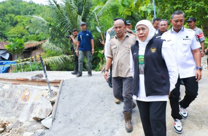 SURABAYATODAY.ID, PACITAN – Gubernur Jawa Timur Khofifah Indar Parawansa meninjau perkembangan pelaksanaan rekonstruksi dua jembatan di Desa Tambakrejo, Kabupaten Pacitan, Senin (22/12). Dua jembatan yang ditinjau yakni Jembatan Lingkungan Dusun Kwaron serta Jembatan Dusun Tambaan yang memiliki peran strategis sebagai penghubung aktivitas sosial dan ekonomi warga, khususnya di wilayah pedesaan Pacitan.