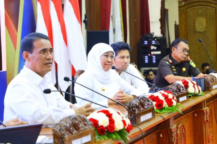 SURABAYATODY.ID, SURABAYA – Forkopimda Jawa Timur bersama Menteri Pertanian RI Andi Amran Sulaiman menggelar Rapat Koordinasi (Rakor) Percepatan Program Hilirisasi Perkebunan di Gedung Negara Grahadi Surabaya, Selasa (23/12).