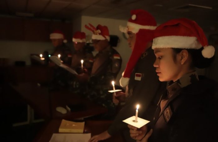 SURABAYATODAY.ID, LEBANON – Meski jauh dari keluarga tercinta di tanah air, prajurit Satuan Tugas Maritime Task Force (Satgas MTF) TNI Konga XXVIII-P/UNIFIL tetap merayakan Hari Raya Natal 2025 dengan penuh khidmat, sukacita, dan kebersamaan. Perayaan Natal tersebut dilaksanakan di Area of Maritime Operation (AMO), Laut Mediterania, Lebanon, saat para prajurit tengah melaksanakan tugas misi perdamaian, Rabu (24/12).