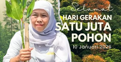 SURABAYATODAY.ID, SURABAYA – Gubernur Jawa Timur Khofifah Indar Parawansa mengajak seluruh lapisan masyarakat untuk bersama menjaga alam, menanam, merawat dan peduli terhadap lingkungan. Ajakan ini disampaikan bertepatan dengan peringatan Hari Gerakan Satu Juta Pohon yang diperingati setiap tanggal 10 Januari.