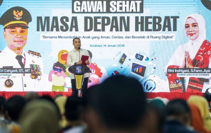 “Tujuan kegiatan hari ini adalah mensosialisasikan Surat Edaran mengenai pembatasan penggunaan HP di lingkungan sekolah. Ini adalah respons serius atas informasi di lapangan, termasuk dari Densus 88, yang menyebutkan adanya anak usia sekolah di beberapa kota, termasuk Surabaya, yang terpapar konten berbahaya hingga radikalisme melalui internet,” ujar Wali Kota Eri.